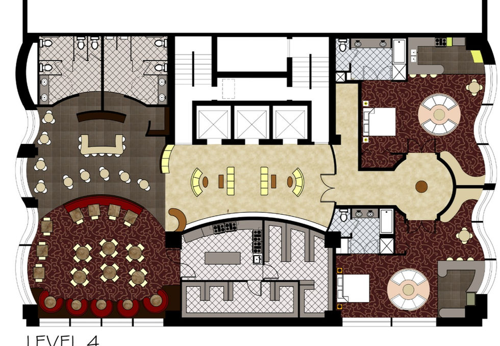 Based on the environment that this building rests on, the thought of transitioning between the two temperatures is to visually capture curved lines and color transitions between both interior floors. Naturally, the fact that heat rises to the top and the bottom level maintaining its cool had worked out in my favor to determine which floor best demonstrates the concept.